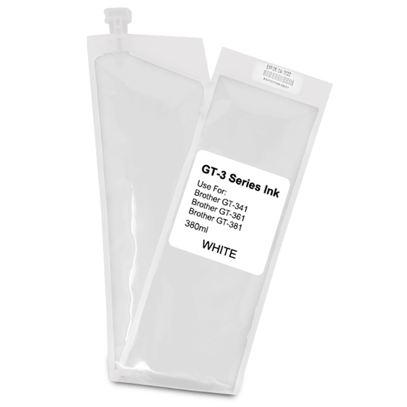 Чернила серии Brother GT-3 предназначены для прямой печати по текстилю на принтерах Brother GT-341, GT-361 и GT-381. Формат поставки — герметичный пакет (bag) объёмом 380 мл, удобный для установки и замены. Доступны все цвета: Black, Cyan, Magenta, Yellow, White.
