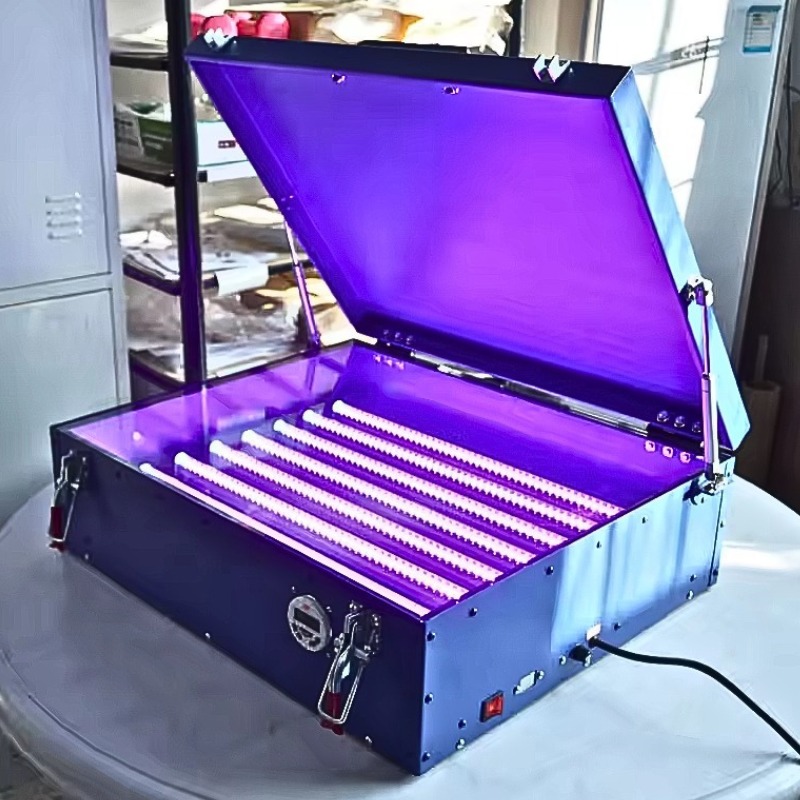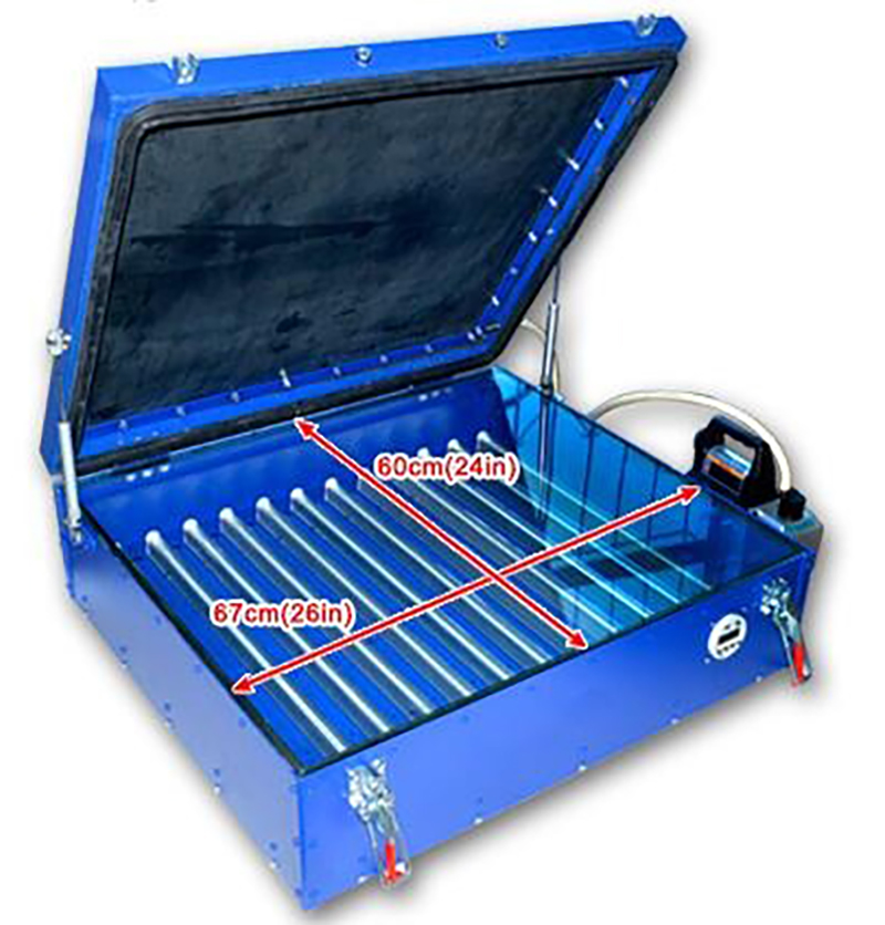 Экспокамера SPE-LEDSBJ6070 — вакуумная UV-экспонирующая установка 2 в 1, предназначенная для засветки трафаретных печатных форм. Оснащена 12 светодиодными лампами с большим сроком службы и цифровым таймером обратного отсчёта с функцией памяти. Подходит для рам максимальным размером до 68 × 62 см.